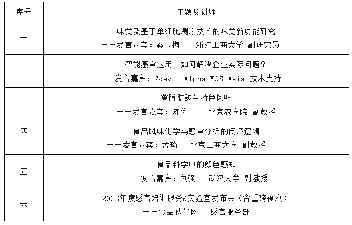 1天6場感官主題分享,包含人工+智能感官基礎(chǔ)(味覺、嗅覺)、食品風(fēng)味化學(xué)&儀器分析、色彩測量視覺應(yīng)用等多個主題分享,更有豐富的案例實踐分享,還有2023年度感官培訓(xùn)服務(wù)/實驗室服務(wù)發(fā)布會等多個環(huán)節(jié),年初為每一位食品人提供線上免費感官學(xué)習(xí)交流的機會,我們一起,充好了電,蓄好了能,2023整裝待發(fā)!