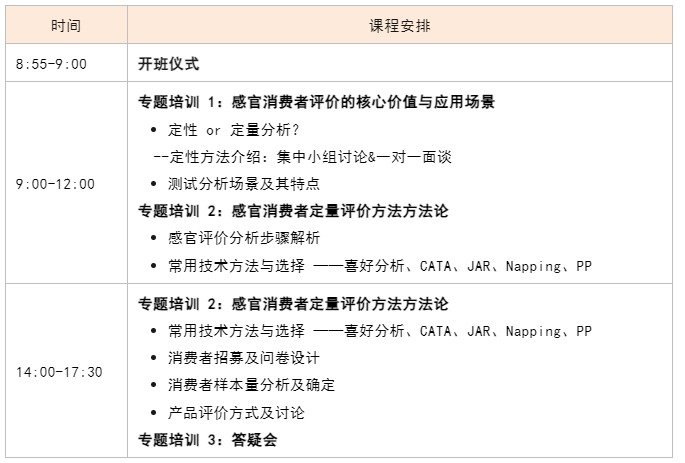 適用對象有一定基礎(chǔ)的感官分析師、消費(fèi)者研究人員、企業(yè)研發(fā)人員、第三方檢測人員、高校老師、市場及公司管理者等