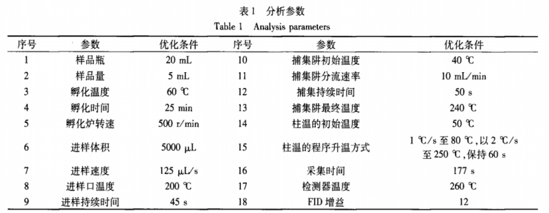 氣相電子鼻檢測參數(shù)