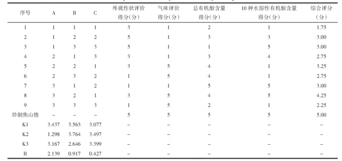 正交實(shí)驗(yàn)烘制焦山楂工藝與炒制焦山楂的比較