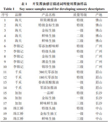 1、市售釀造醬油感官描述詞的產(chǎn)生與刪減