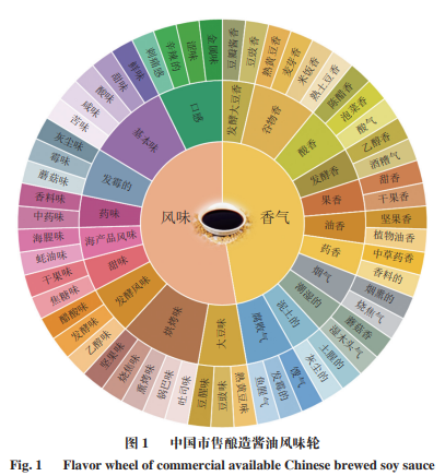 中國(guó)釀造醬油風(fēng)味輪,使用48種中國(guó)市售釀造醬油感官分析