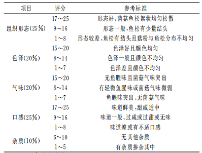 表2 菌菇魚松感官評分標(biāo)準(zhǔn)