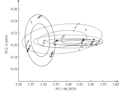 圖7 不同菌菇魚松電子鼻數(shù)據(jù)的PCA分析圖