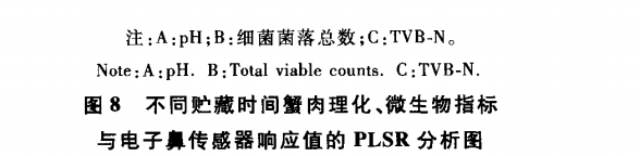 傳感器響應(yīng)值對(duì)不同貯藏時(shí)間蟹肉的理化指標(biāo)的預(yù)測(cè)