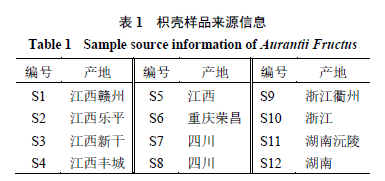 12批枳殼樣品購于甘肅中天藥業(yè)有限責(zé)任公司,具體樣品批次信息見表1,經(jīng)南京中醫(yī)藥大學(xué)藥學(xué)院陳建偉教授鑒定,確定樣品來源為蕓香科植物酸橙C. aurantium L.的干燥未成熟果實。