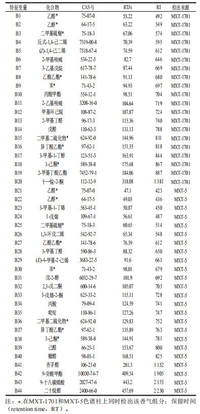 表2 基于GC-E-Nose技術(shù)的揮發(fā)性化合物定性結(jié)果