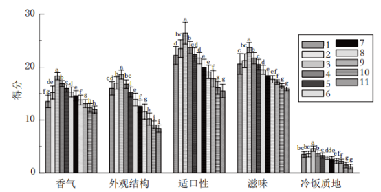 圖7不同比例苦蕎米人工感官評(píng)價(jià)結(jié)果