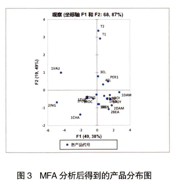多重因子分析(multiple factor analysis,MFA)是一種多元統(tǒng)計(jì)分析手段,用于描述和總結(jié)具有復(fù)雜結(jié)構(gòu)和多方來源的多元數(shù)據(jù)。該方法與主成分分析有密切聯(lián)系,在食品、飲料和化妝品的感官分析及市場調(diào)查等領(lǐng)域中均有廣泛應(yīng)用。