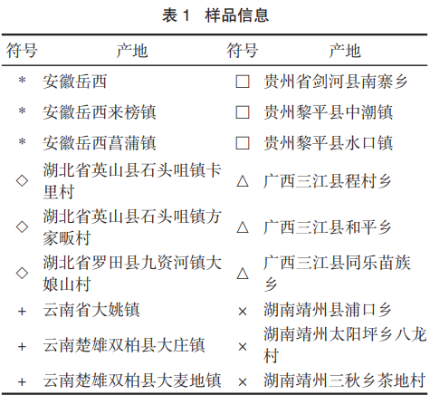 藥材樣品采集于安徽、云南、貴州、廣西、湖北、湖南等6個?。▍^(qū))18個產(chǎn)地。