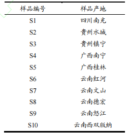 10種不同產(chǎn)地草果干燥成熟果實(shí),草果樣品具體信息見(jiàn)表1。