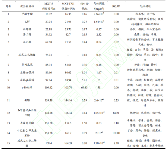 主要差異揮發(fā)性化合物定性及定量分析