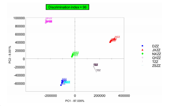 參考文獻(xiàn):YupingDai,DanHuang,YeHe,etal.ExploratoryStudyonDistinguishingDendrobiumStemandFiveSpeciesofDendrobiumUsingHeraclesNeoUltra-FastGasPhaseElectronicNose[J].