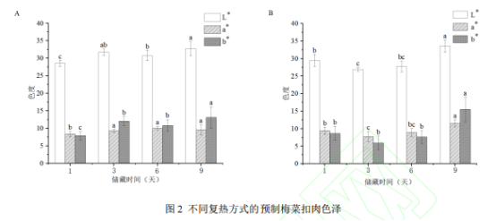 復熱方式對預制梅菜扣肉色澤的影響